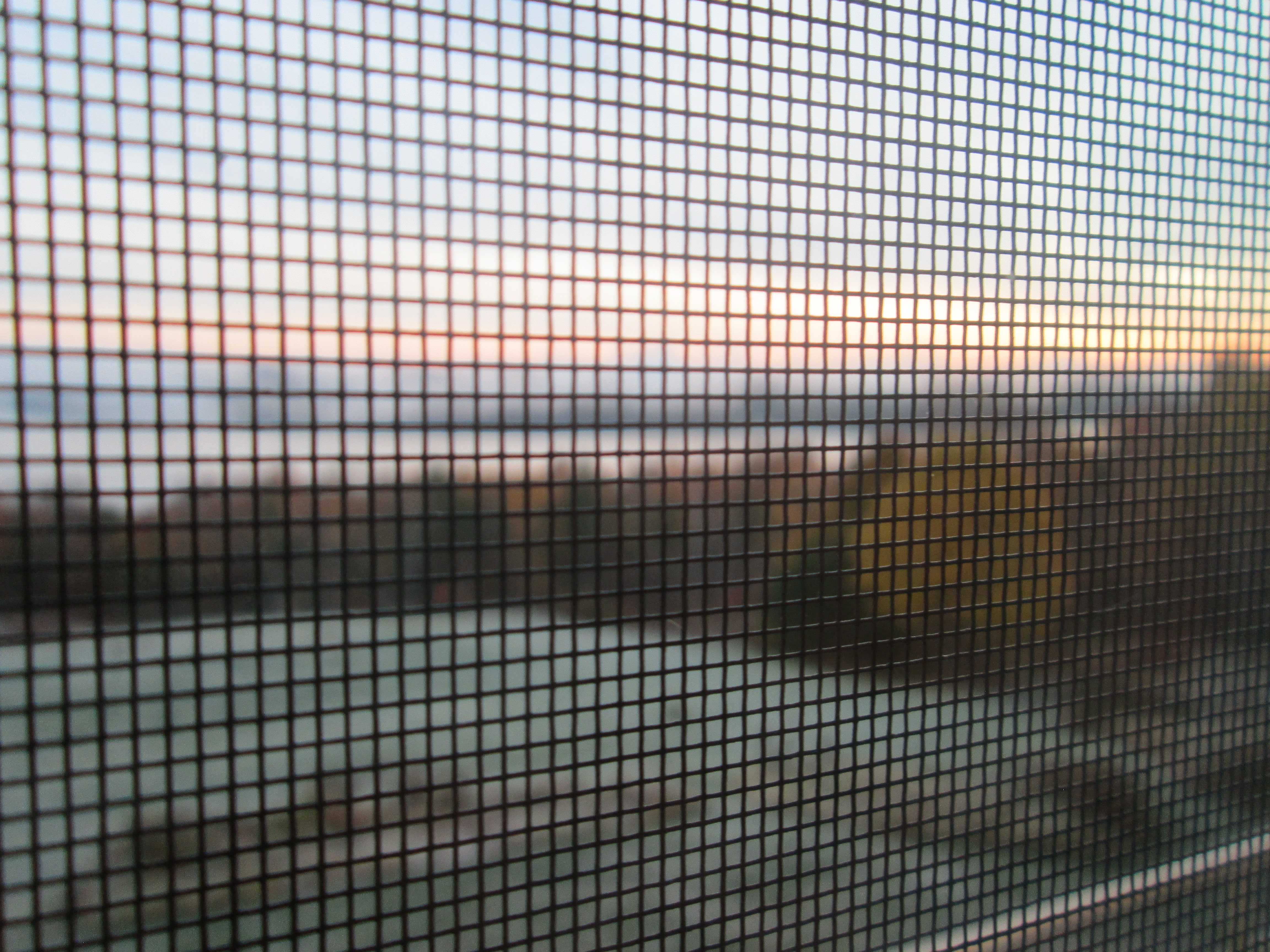 The meadow and the lake through the screen